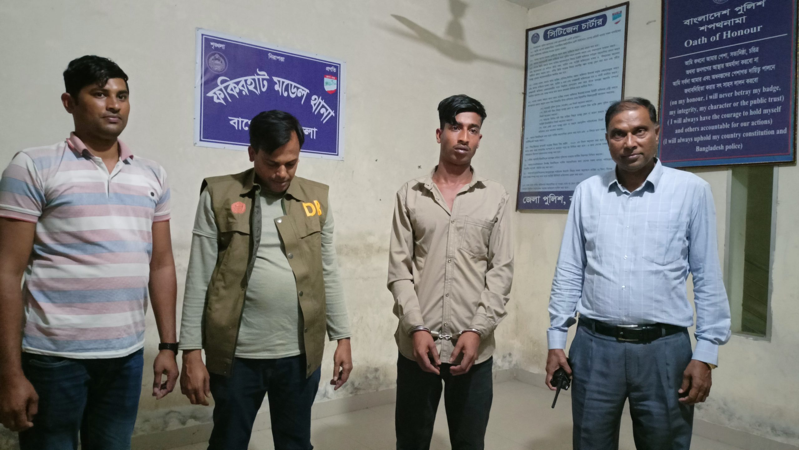 গ্রেপ্তারকৃত মো. ওমর হাওলাদার (২৩) পিরোজপুর জেলার মঠবাড়িয়া উপজেলার ধানিসাফা গ্রামের কবির হাওলাদারের ছেলে। সে বর্তমানে বাগেরহাট জেলার মোংলা আবাসনে একটি বাড়িতে ভাড়া বাসা নিয়ে বসবাস করে আসছিল।
