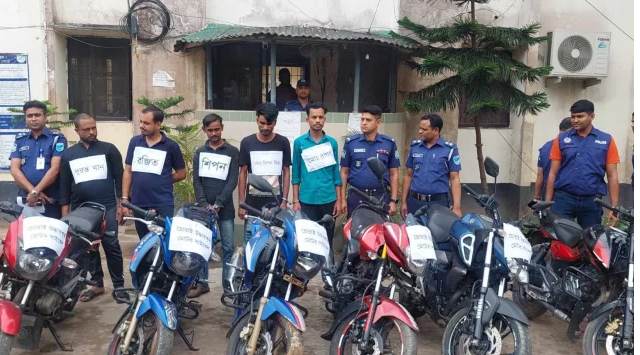 গাজীপুরের শ্রীপুরে মোটরসাইকেল চুরি সংক্রান্ত একটি মামলা তদন্তে গিয়ে পুলিশ আরও ৯টি মোটরসাইকেল উদ্ধার করেছে। এ ঘটনায় আন্তঃজেলা মোটরসাইকেল চোর চক্রের পাঁচ সদস্যকে গ্রেপ্তার করেছে শ্রীপুর থানা–পুলিশ। গ্রেপ্তারদের বিরুদ্ধে দেশের বিভিন্ন থানায় একাধিক চুরি মামলা রয়েছে বলে জানিয়েছে পুলিশ।