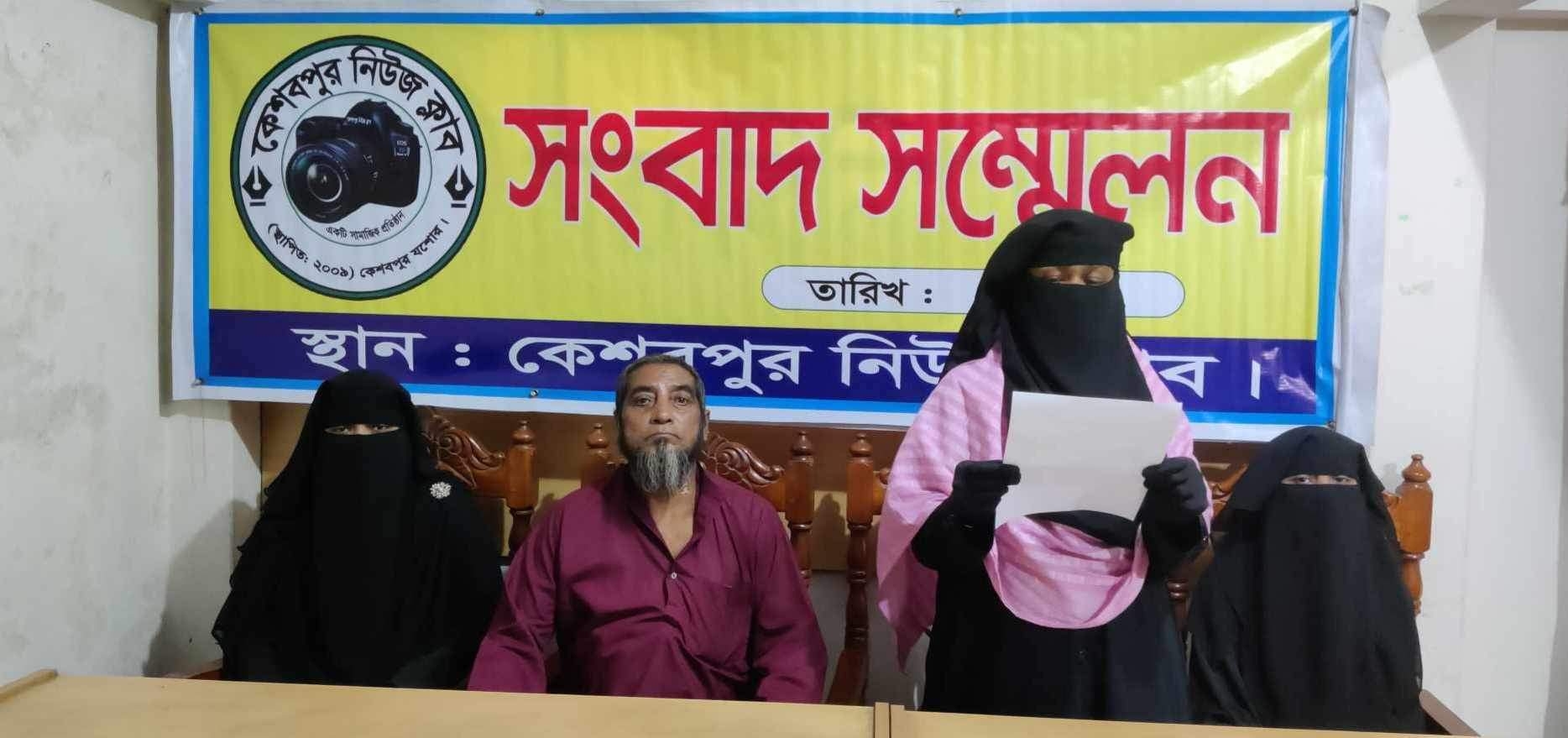 যশোরের কেশবপুর উপজেলার মঙ্গলকোট ইউনিয়নের বসুন্তিয়া গ্রামের মোঃ শাহিন মৌলঙ্গীর স্ত্রী মোছাঃ নাজমুন নাহার সুমি ও তার কন্যা সন্তানদেরসহ শ্বশুরকে গালিগালাজ, মারপিট ও প্রাণনাশের হুমকির ঘটনায় অপরাধীদের দৃষ্টান্তমূলক শাস্তির দাবিতে সোমবার ৮এপ্রিল ২০২৪ খ্রিঃ তারিখে কেশবপুর নিউজ ক্লাবে সংবাদ সন্মেলন অনুষ্ঠিত হয়েছে।