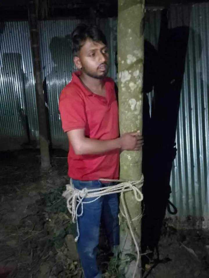 লালমনিরহাটের হাতীবান্ধা উপজেলার গড্ডিমারীতে রুবেল নামে এক ছাত্রলীগের নেতাকে গাছে বাধল গ্রামের লোকজন।