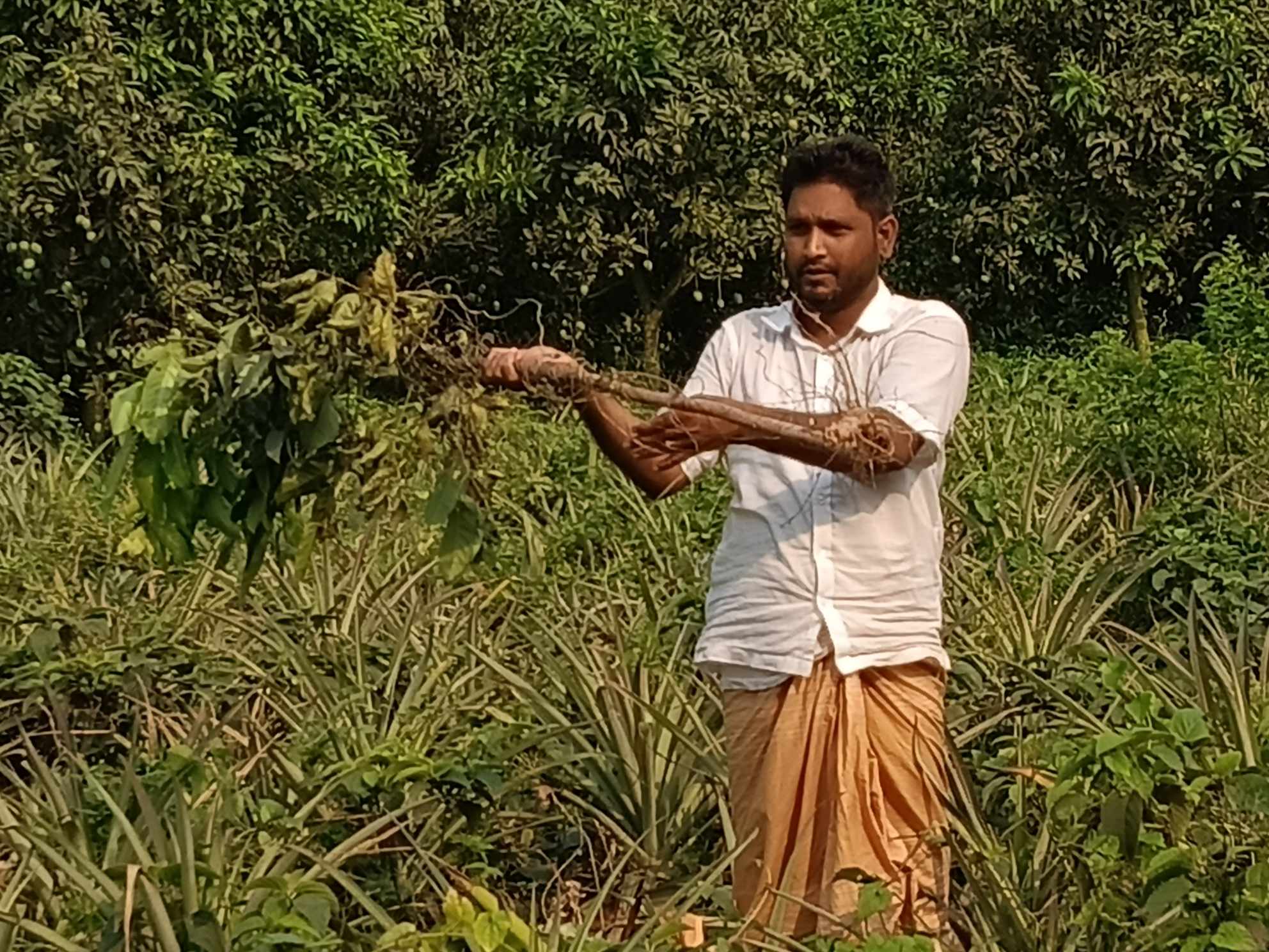দিনাজপুরের ফুলবাড়ীতে রেজাউল আলম নামে একজন চিকিৎসকের আম ও আনারস বাগানের প্রায় ২০০টি ফলজ আমের গাছ উপড়ানোসহ আনারস ক্ষেতের ব্যাপক ক্ষয়ক্ষতির অভিযোগ পাওয়া গেছে। ঘটনাটি ঘটেছে উপজেলার পৌরসভার তেতুলিয়া গ্রামে স্বপ্নপুরি রোডে। এই ঘটনার প্রতিবাদে চিকিৎসক রেজাউল আলমের ছোট ভাই মোঃ খাদিমুল ইসলাম ফুলবাড়ী থানায় বাদী হয়ে একটি সাধারণ ডাইরি করেন। বাদী খাদেমুল ইসলাম জানান, তার ভাই রেজাউল আলম তেতুলিয়া মৌজার জে,এল ৫৪, খতিয়ান নং ২৮৯, ১২৬১ নং দাগের ৩৩ শতক ক্রয়কৃত জমিতে গত কয়েক বছর ধরে বাগান আকারে আম ও আনারসের চাষ করে আসতেছেন। তার ভাই পেশাগত কারনে রংপুরে থাকায় বাগানগুলো কাছে থেকে দেখাশুনা করা সম্ভব হয়না। গত দেড় বছর পূর্বে প্রায় ২০০ টি আমের গাছ সেখানে লাগানো হয়। বর্তমানে প্রতিটি গাছেই থোকায় থোকায় আম ধরেছিল। কিন্তু গতকাল সকাল সাতটায় জমিতে গিয়ে দেখা যায় সব আমের গাছ উপড়ানো ও আনারসের ক্ষেত লন্ডভন্ড অবস্থায় পড়ে আছে। আম ও আনারসসহ প্রায় আড়াই লক্ষ টাকার ক্ষয়ক্ষতি হয়। প্রতিবেশী মোঃ খেরাজ উদ্দিনের ছেলে মোঃ রাকিব খান দীর্ঘদিন থেকে এই জমি ও বাগান নিয়ে শত্রুতা করে আসছিল বলে সে এই কাজটি করেছে বলে সন্দেহ পোষণ করছে ভুক্তভোগী। জানা যায় ক্ষেতের পাশেই রাকিবের গোডাউন ঘর। সে প্রায় আমার ভাইয়ের জমির বেড়ার উপর মাটি দিয়ে আইল সরিয়ে দিত। এর প্রতিবাদে কিছু বলতে গেলে হুমকি দিত। যখন তখন ভয়-ভীতি প্রদর্শন করতো। তাছাড়া ঘটনার আগের দিন রাতে সে তার বন্ধু-বান্ধব নিয়ে সারারাত পিকনিক করে তার গোডাউন ঘরে। খাদিমুল ইসলাম এই ঘটনার সুষ্ঠু তদন্তের দাবি জানায়। এ বিষয়ে থানার অফিসার ইনচার্জ মোঃ মোস্তাফিজার রহমানের সঙ্গে কথা বললে তিনি বলেন, ২০০ টি আম গাছ উপড়ানো ও আনারস ক্ষেতের ক্ষয়ক্ষতি অভিযোগ পেয়েছি। তদন্ত সাপেক্ষে ব্যবস্থা গ্রহণ করা হবে।