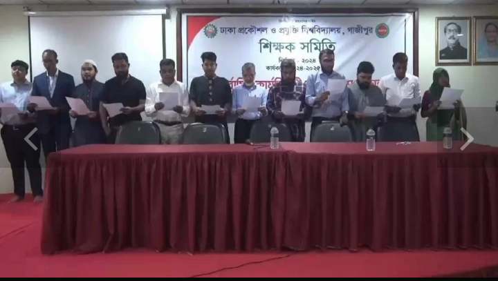 গাজীপুরের ঢাকা প্রকৌশল ও প্রযুক্তি বিশ্ববিদ্যালয়ের (ডুয়েট) নবনির্বাচিত শিক্ষক সমিতির কার্যনির্বাহী কমিটি শপথ নিয়েছে। বুধবার দুপুরে বিশ্ববিদ্যালয়ের অ্যাকাডেমিক ভবনে প্রধান নির্বাচন কমিশনার অধ্যাপক ড. মো. মাহমুদ আলম শিক্ষক সমিতির নেতাদের শপথবাক্য পাঠ করান।