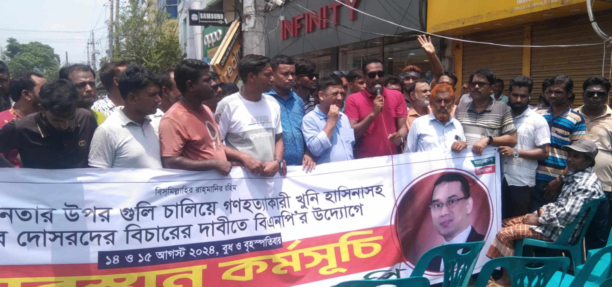 বিএনপির উদ্যোগে অবস্থান কর্মসূচি পালন শহরের নিউ মার্কেটে সামনে।