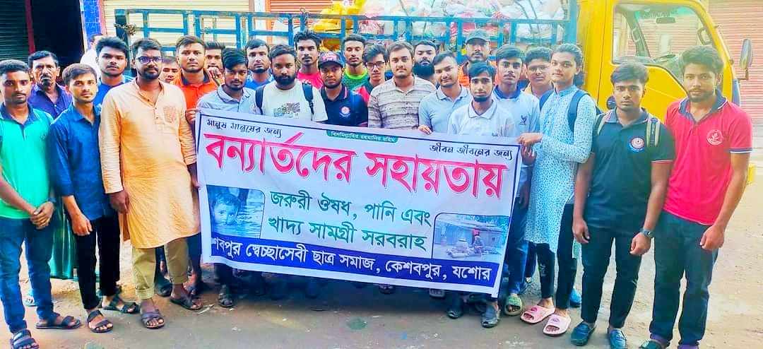 কেশবপুর সম্মিলিত স্বেচ্ছাসেবী ঐক্য পরিষদ ও বৈষম্যবিরোধী ছাত্র আন্দোলনের শিক্ষার্থীরা উপজেলার বিভিন্ন এলাকা থেকে বন্যার্তদের মাঝে ত্রাণ সামগ্রী দিতে আর্থিক সহায়তা সংগ্রহ করেন। ওই সহায়তার অর্থ থেকে প্রথম ধাপে বন্যার্ত ৪০০ পরিবারের মাঝে ত্রাণ সামগ্রী দেওয়া হয়েছে। পরবর্তীতে আরও ৬০০ বন্যার্ত পরিবারের মাঝে ত্রাণ সামগ্রী পৌঁছে দেওয়া হবে বলে স্বেচ্ছাসেবী ছাত্র সমাজ জানিয়েছেন।