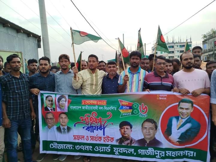 গাজীপুর নানা আয়োজনে বাংলাদেশ জাতীয়তাবাদী দল (বিএনপির) ৪৬তম প্রতিষ্ঠাবার্ষিকী পালিত হয়েছে। রবিবার দুপুরে দলীয় কার্যালয়ের সামনে দলীয় ও জাতীয় পতাকা উত্তোলনের মধ্য দিয়ে প্রতিষ্ঠাবার্ষিকীর অনুষ্ঠানের উদ্বোধন করেন বিএনপির ৩৭ নং ওয়ার্ড কমিটির সভাপতি মোঃ আশাফুল ইসলাম অভি