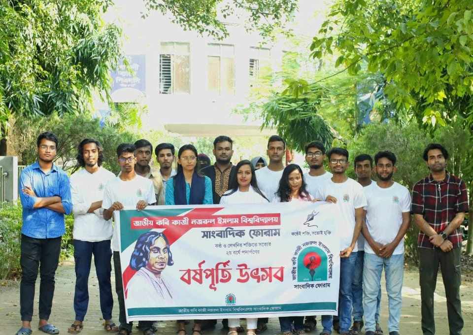 জাতীয় কবি কাজী নজরুল ইসলাম বিশ্ববিদ্যালয় সাংবাদিক ফোরামের এক বছর পূর্তি উপলক্ষ্যে প্রতিষ্ঠাবার্ষিকী উদযাপিত হয়েছে।