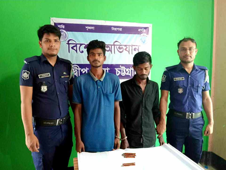 গ্রেফতাকৃতরা হলেন- মোঃ জাবেদ (২৫) ও মুক্তাদুল মাওলা মুন্না( ২২) উভয়ে সন্দ্বীপ পৌরসভা ৮ নং ওয়ার্ডের কালা মাঝি ও আজিম মাঝি বাড়ির খোকন ও মামুনের পুত্র।