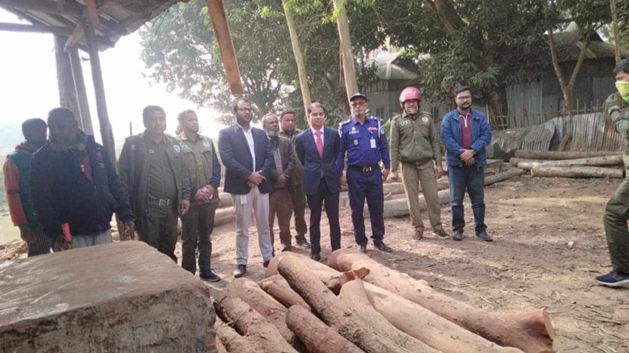 অবৈধ করাত কলগুলোর বিভিন্ন যন্ত্রাংশ ও অবৈধ কাঠ জব্দ করা হয়েছে।