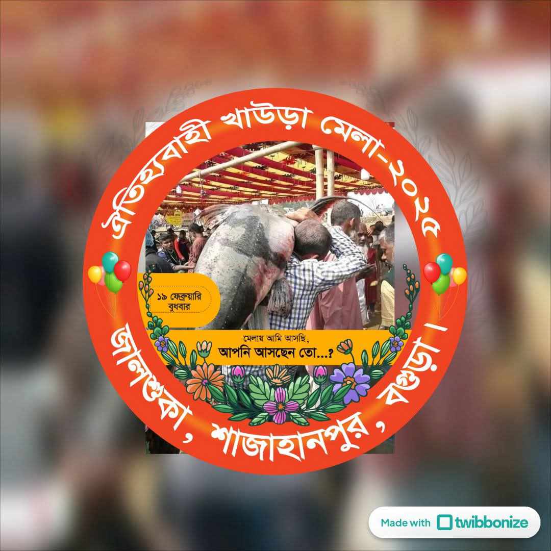 আসিতেছে আগামী ১৯ শে ফেব্রুয়ারি ২০২৫ খ্রি ০৬ ই ফাল্গুন ১৪৩১ বঙ্গাব্দ রোজ বুধবার, মেলার নির্ধারিত স্থান: গ্রাম জালশুকা ,পোস্ট বোহাইল ,ইউনিয়ন খোট্টাপাড়া, থানা শাজাহানপুর, জেলা বগুড়া, খারুয়া ব্রিজ সংলগ্ন মেলা অনুষ্ঠিত হবে।