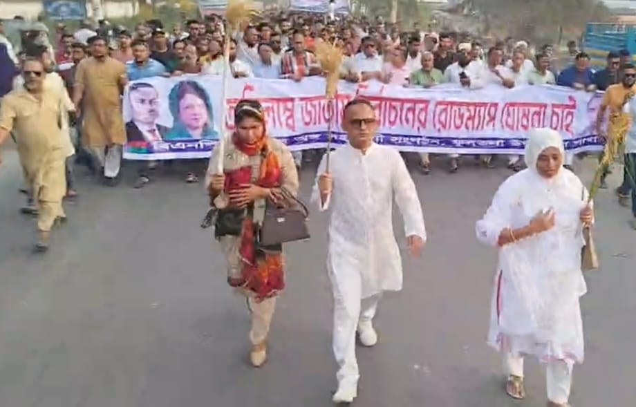 শুক্রবার,২৮ ফেব্রুয়ারি। অবিলম্বে জাতীয় সংসদ নির্বাচনের রোডম্যাপ ঘোষণার দাবিতে খুলনার ফুলতলায় বিক্ষোভ মিছিল ও সমাবেশ করেছে বিএনপি ও অঙ্গ সংগঠনগুলো। মিছিলটির নেতৃত্ব দেন খুলনা-৫ আসনের বিএনপির মনোনয়নপ্রত্যাশী ও জেলা যুবদলের আহ্বায়ক ইবাদুল হক রুবায়েদ।আজ বিকেল পাঁচটায় ফুলতলা উপজেলা পরিষদ থেকে ফুলতলা বাজার পর্যন্ত মিছিলটি অনুষ্ঠিত হয়। মিছিল শেষে সমাবেশে বক্তারা দ্রুত নির্বাচনের রোডম্যাপ ঘোষণার দাবি জানান।