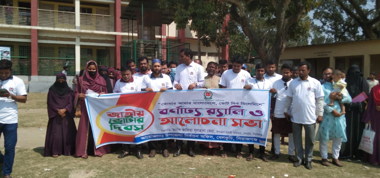 ‘তোমার আমার বাংলাদেশে, ভোট দিবো মিলেমিশে’ এ প্রতিপাদ্যকে সামনে রেখে সিরাজগঞ্জের বেলকুচিতে জাতীয় ভোটার দিবস উপলক্ষে বর্নাঢ্য র্যালি ও আলোচনা সভা অনুষ্ঠিত হয়েছে।