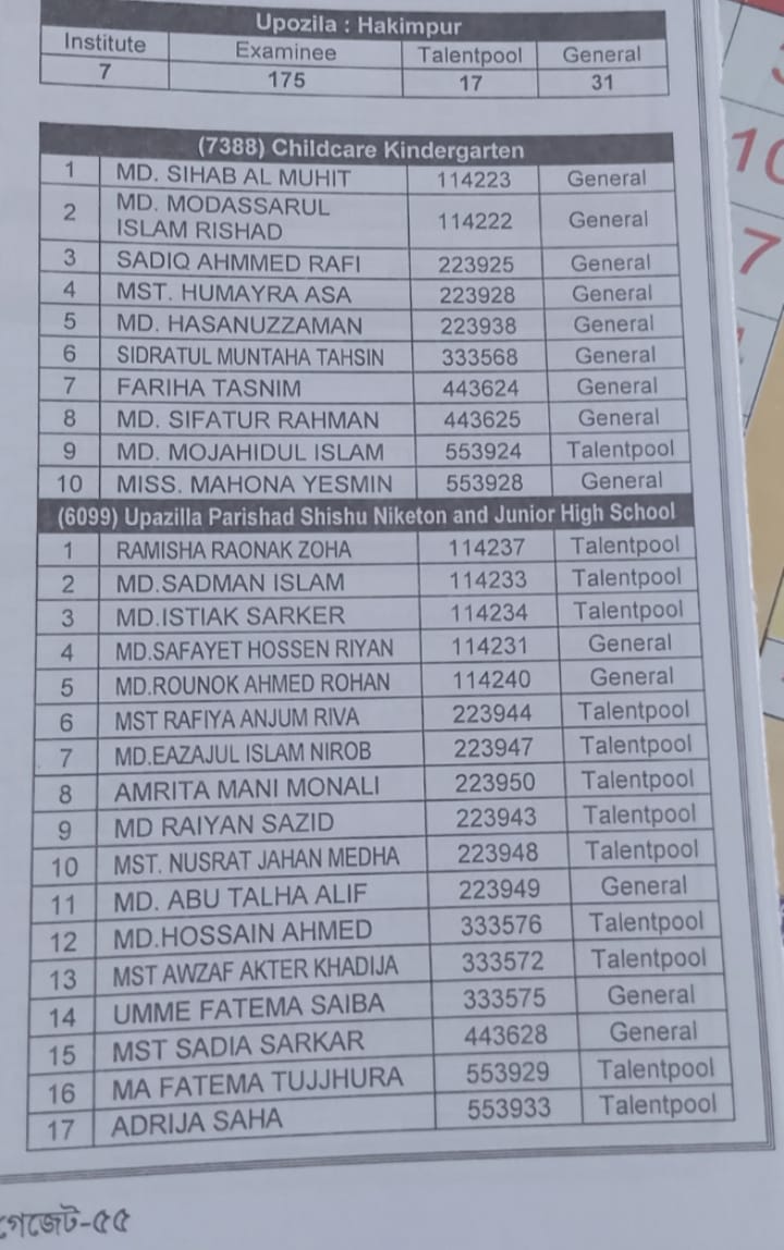 জানা যায়, হাকিমপুর উপজেলার দশটি স্কুল বৃত্তি পরীক্ষায় অংশগ্রহণ করেন তার মধ্যে উপজেলা পরিষদ শিশু নিকেতন ও নিন্ম মাধ্যমিক বিদ্যালয় থেকে ১৯ জন বৃত্তি পেয়েছে। তার মধ্যে ১৩ জন ট্যালেন্টফুল ও ৬ জন সাধারণ গ্রেডে।
