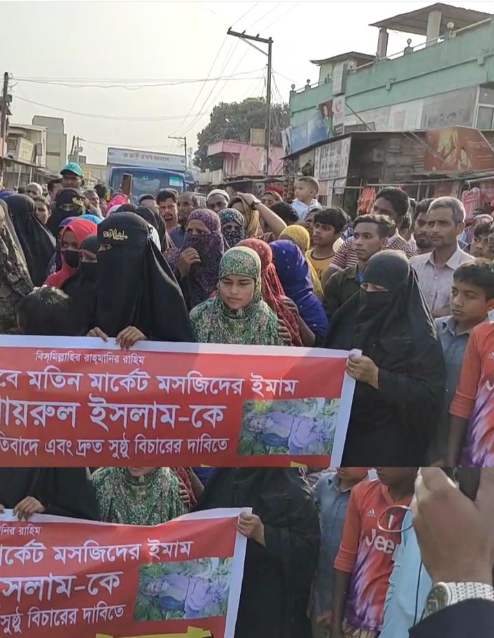 রাণীশংকৈলে আলোচিত হত্যা নেকমরদ মতিন মার্কেট মসজিদের ইমাম খাইরুল ইসলামকে হত্যার প্রতিবাদে ও সুষ্ঠু বিচারের দাবিতে ১:ঘন্টাব্যাপী বিক্ষোভ মিছিল ও মানববন্ধন করেছে এলাকাবাসী