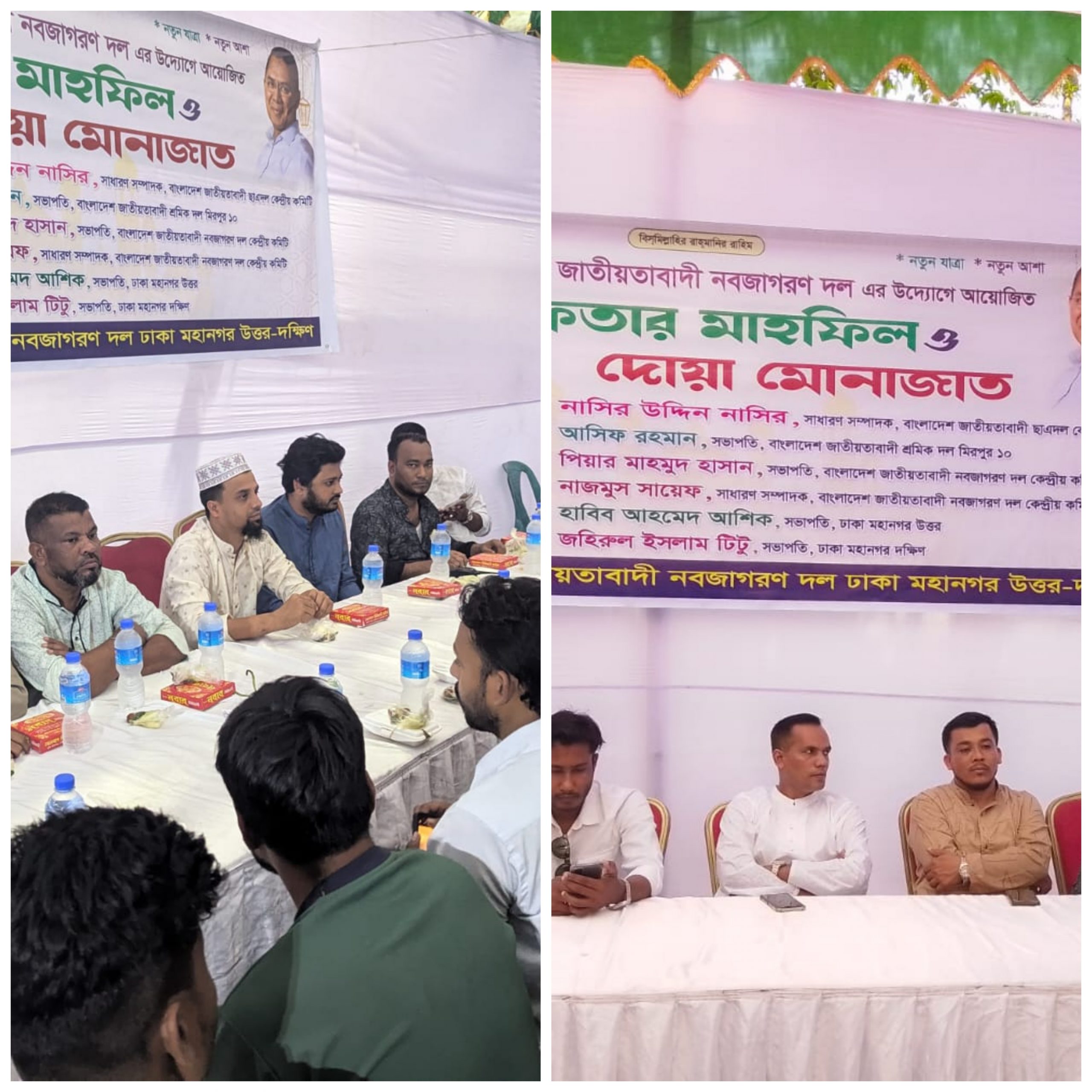 ঢাকা উত্তর ও দক্ষিণ মহানগর বিএনপির বাংলাদেশ জাতীয়তাবাদি নবজাগরণ দলের উদ্যোগে শুক্রবার (১৪ ই মার্চ) ফার্মগেটের জিয়া উদ্যানে এক বিশাল ইফতার ও দোয়া মাহফিলের আয়োজন করা হয় ।