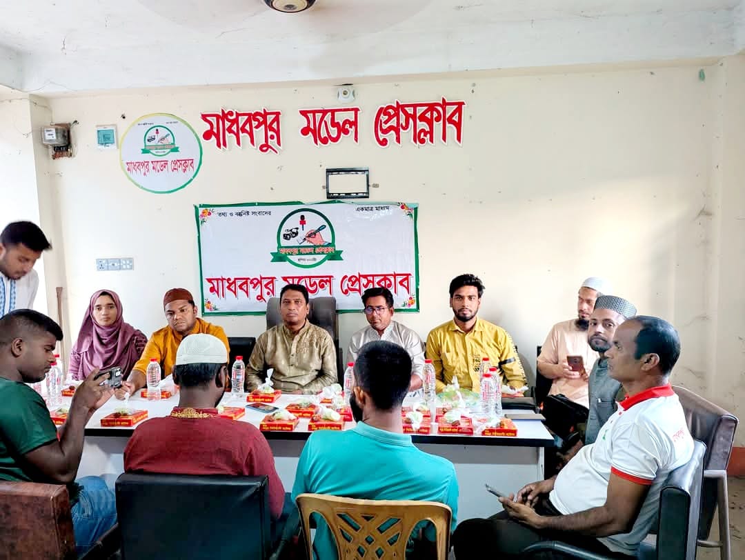 মাধবপুর মডেল প্রেসক্লাবের সভাপতি ও এশিয়ান টিভির প্রতিনিধি আজিজুর রহমান জয়ের সভাপতিত্বে অনুষ্ঠিত ইফতার ও দোয়া মাহফিলে সাংবাদিক ফরাসউদ্দীনের সঞ্চালনায় স্বাগত বক্তব্য রাখেন প্রেস ক্লাবের সাধারণ সম্পাদক আল আমিন ইসলাম।