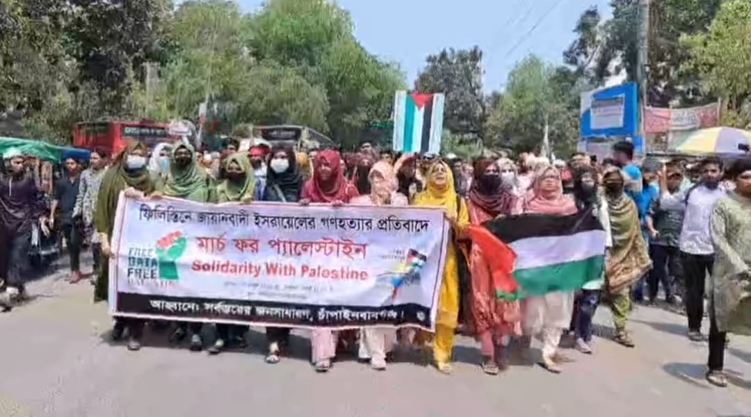 চাঁপাইনবাবগঞ্জে ফিলিস্তিনে জায়ানবাদী ইসরায়েলে গনহত্যার প্রতিবাদে মার্চ ফর প্যালেস্টাইন মানববন্ধন ও মিছিল অনুষ্ঠিত হয়।
