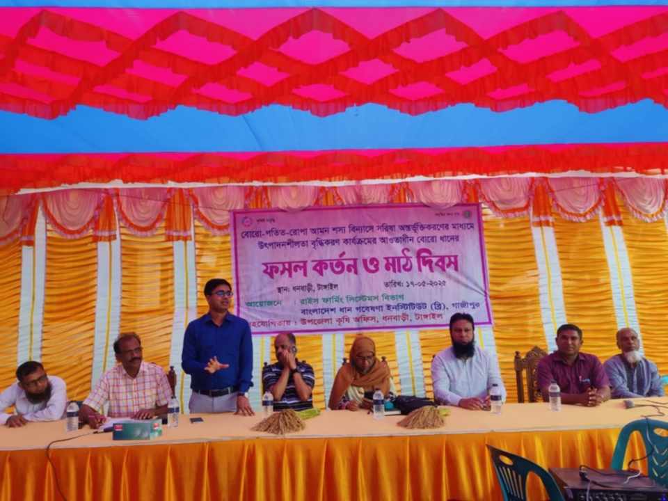 বোরো - পতিত - রোপা আমন শস্য বিন্যাসে সরিষা অন্তর্ভুক্তিকরনের মাধ্যমে উৎপাদনশীলতা বৃদ্ধিকরণ কার্যক্রমের আওতাধীন বোরো ধানের ফসল কর্তন ও মাঠ দিবস শনিবার (১৭ মে) টাঙ্গাইলের ধনবাড়ী উপজেলার মুশুদ্দী ইউনিয়নের মুশুদ্দী পূর্ব পাড়ায় অনুষ্ঠিত হয়েছে । বাংলাদেশ ধান গবেষণা ইনিস্টিউট আঞ্চলিক কার্যলয়, গোপালগঞ্জ এর প্রধান এবং চীফ সাইন্টিফিক অফিসার ড. আমিনা খাতুন এর সভাপতিত্বে অনুষ্ঠানে প্রধান অতিথি হিসেবে উপস্থিত ছিলেন বাংলাদেশ ধান গবেষণা ইনিস্টিউট আঞ্চলিক কার্যালয়, ধনবাড়ী এর প্রধান এবং সিনিয়র সাইন্টিফিক অফিসার ড. মসউদ ইকবাল ।
