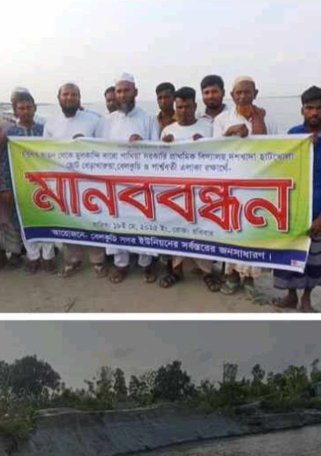 সিরাজগঞ্জ পানি উন্নয়ন বোর্ডের প্রতি আহবান জানিয়ে নদী ভাঙ্গনের হাত থেকে রক্ষায় প্রকল্প বাস্তবায়নের দাবীতে যমুনা বিধৌত বেলকুচি উপজেলার ভাঙ্গন কবলিত এলাকাবাসী প্রকল্পে অসমাপ্ত কাজ সম্পন্ন করতে মানব বন্ধন কর্মসূচি পালন করে।