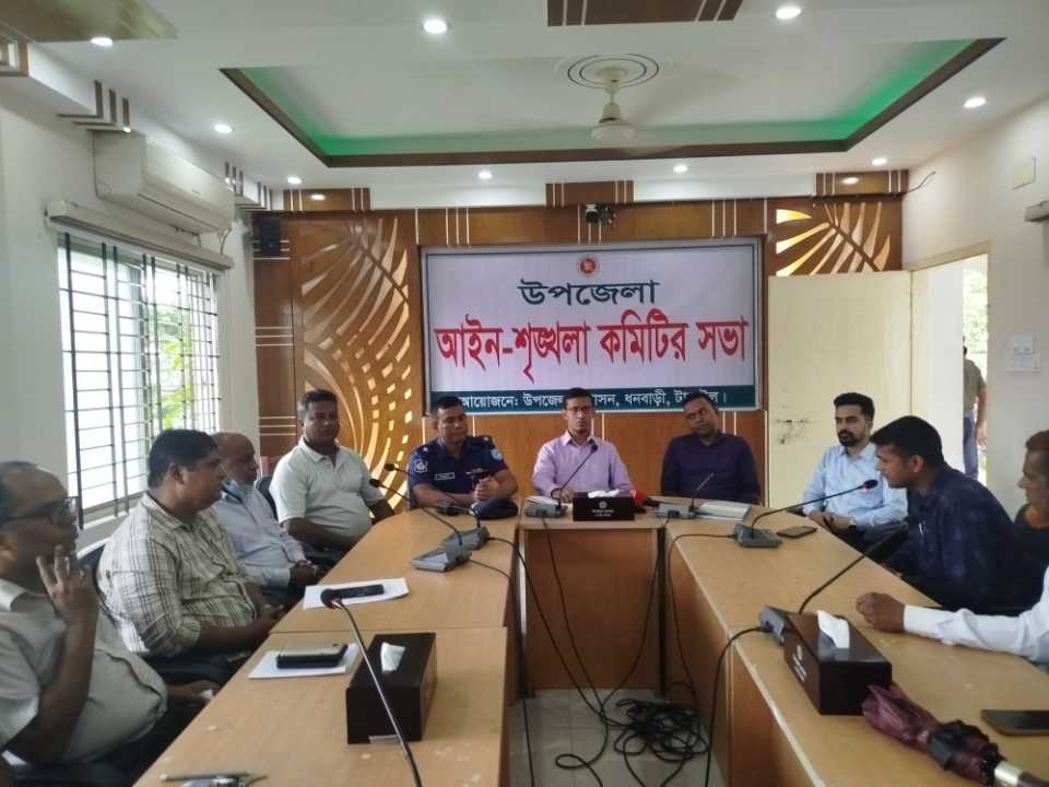 টাঙ্গাইলের ধনবাড়ী উপজেলা প্রশাসনের উদ্যোগে বুধবার (২৫ জুন) মাসিক আইনশৃঙ্খলা সভা উপজেলা পরিষদের হলরুমে অনুষ্ঠিত হয়েছে ।