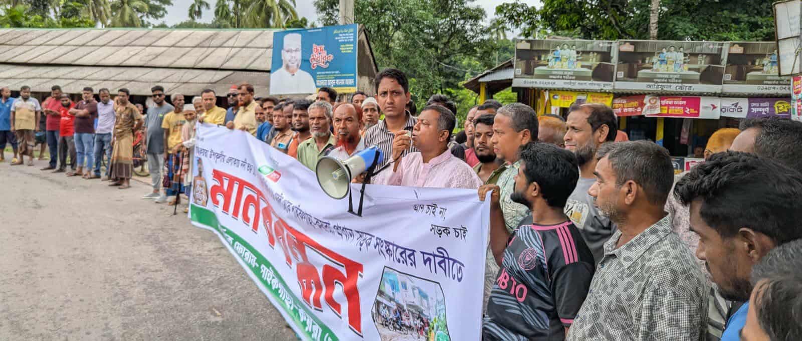 পাইকগাছায় নদীভাঙন রোধে টেকসই বেড়িবাঁধ নির্মাণ এবং ১৮ মাইল থেকে পাইকগাছা–কয়রা প্রধান সড়ক দ্রুত সংস্কারের দাবিতে মানববন্ধন অনুষ্ঠিত হয়েছে।