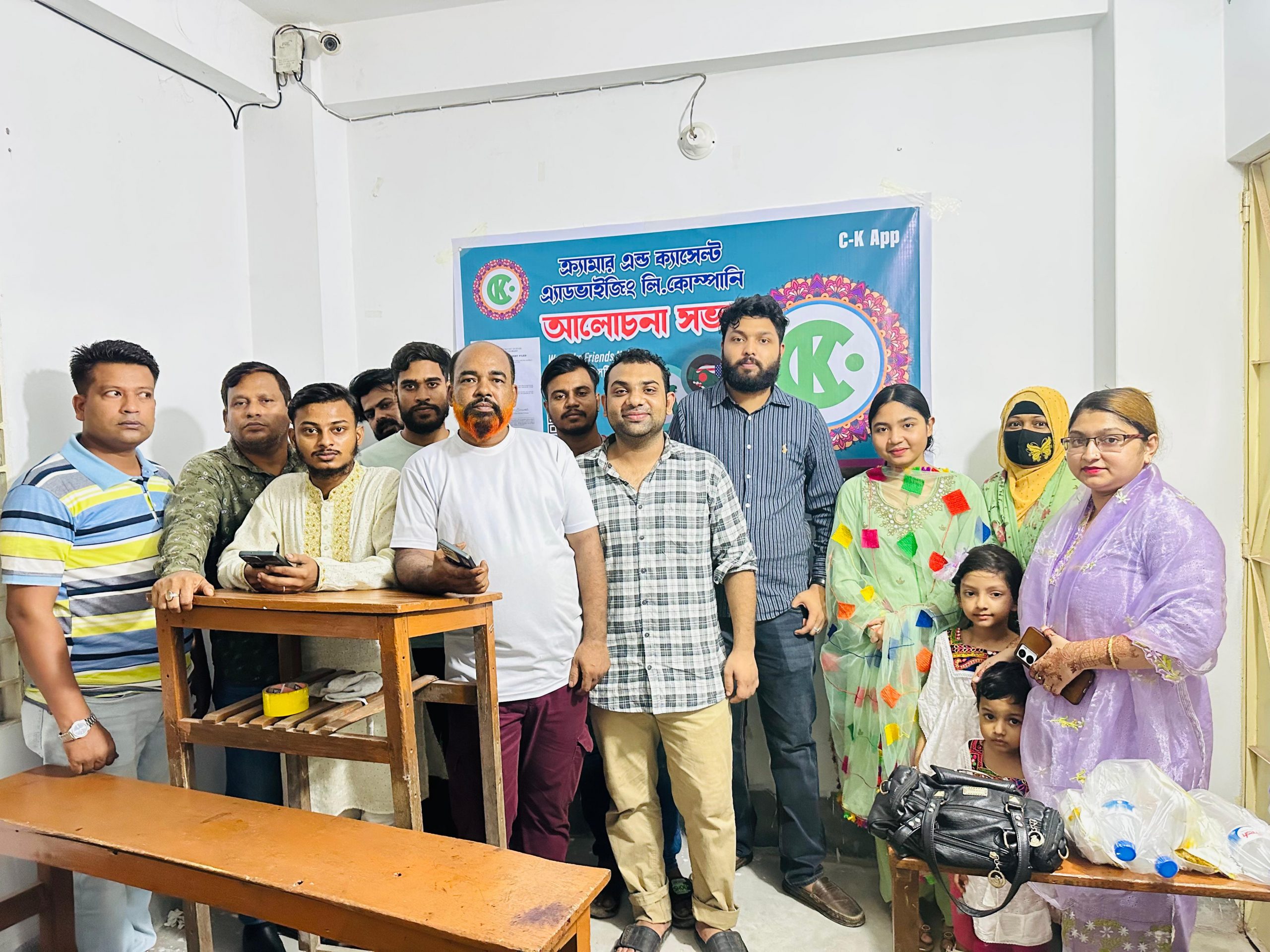 উক্ত কোম্পানির গ্রুপ লিডার মোঃ জাহাঙ্গীর আলম তিনি তার বক্তব্যে বলেন সি - কে কোম্পানিটি ২০২৫ সালের ফেব্রুয়ারিতে সর্বপ্রথম খুলনার স্থানীয় বিশেষ সমাজ সেবক ও একজন সফল ব্যবসায়ী জনাব ফাইজুর রহমান রুমেত সাহেবের হাত ধরে যাত্রা শুরু করেন এই কোম্পানিটি এরপর থেকেই ধীরে ধীরে কোম্পানিটির সদস্য সরকার শত শত থেকে হাজারে পরিণত হয়, এখানেই শেষ নয় এই কোম্পানিটির হয়ে কাজ করে খুলনার লিডার জনাব ফাইজুর রহমান রুমেত শতশত অসহায় গরিব দুঃখী মানুষ এবং অসহায় শিশু বাচ্চাদের পাশে দাঁড়াতে সক্ষম হয়েছেন। ৭৭৭ নং গ্রুপের টিম লিডার মো: জাহাঙ্গীর আলম আরও বলেন এই কোম্পানিতে কাজ করলে যেমন নিজেকে স্বাবলম্বী করে গড়ে তোলা যায় ঠিক তেমনি আশেপাশে থাকা অসহায় গরীব দুঃখী মানুষের সেবাও করার যথেষ্ট সুজোগ আছে এখানে। তাই তিনি আহ্বান জানান উপস্থিত গ্রুপের সকল সদস্যদের মাধ্যমে যত দ্রুত সম্ভব আমাদের সবাইকে কাঁধে কাঁধ মিলিয়ে একসাথে কাজ করে এই সি-কে কোম্পানিটিকে এগিয়ে নিতে হবে । সেই সাথে জনাব জাহাঙ্গীর আলম উক্ত কোম্পানির সকল ম্যানেজমেন্ট ও কোম্পানির অনার কে ধন্যবাদ জানান বাংলাদেশে এমন একটি কর্মসংস্থানের সুযোগ করে দেওয়ার জন্য।
