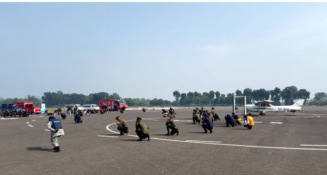 রাজশাহীর শাহমখদুম বিমানবন্দরে আন্তর্জাতিক মানদণ্ড অনুসরণ করে ‘এয়ারপোর্ট সিকিউরিটি এক্সারসাইজ’ শীর্ষক পূর্ণাঙ্গ নিরাপত্তা মহড়া অনুষ্ঠিত হয়েছে। এই মহড়ায় প্রধান অতিথি ছিলেন বেসবিচক চেয়ারম্যান এয়ার ভাইস মার্শাল মোস্তফা মাহমুদ সিদ্দিক।