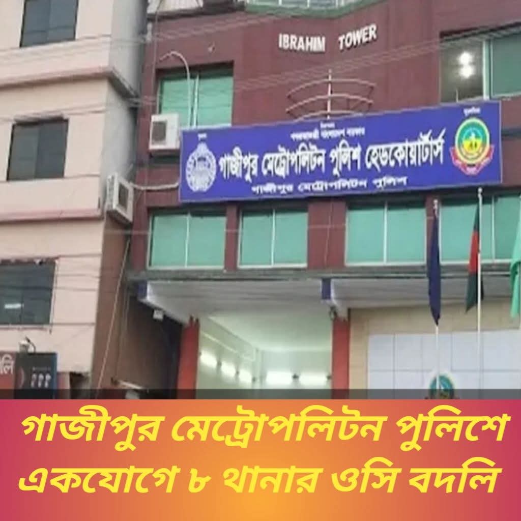 আসন্ন ত্রয়োদশ জাতীয় সংসদ নির্বাচনকে সামনে রেখে গাজীপুর মেট্রোপলিটন পুলিশে (জিএমপি) একযোগে আটটি থানার ওসি (অফিসার ইনচার্জ) পরিবর্তন করা হয়েছে। জিএমপির ভারপ্রাপ্ত পুলিশ কমিশনার মোহাম্মদ জাহিদুল হাসান স্বাক্ষরিত আদেশে বৃহস্পতিবার এ ব্যাপারে নির্দেশনা জারি করা হয়।
