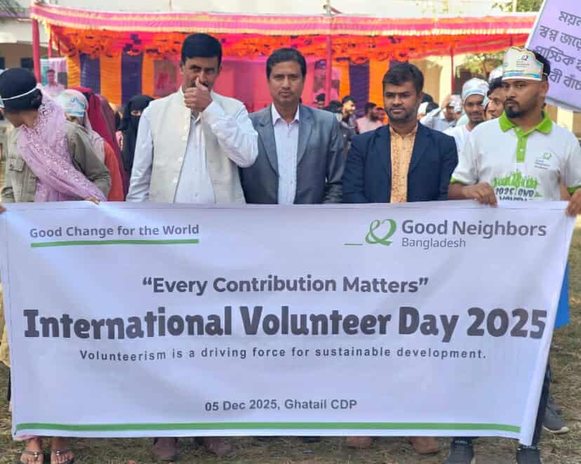 টাঙ্গাইলের ঘাটাইলে গুডনেইবারস বাংলাদেশ ঘাটাইল সিডিপির আয়োজনে আন্তর্জাতিক স্বেচ্ছাসেবক দিবস ২০২৫ পালিত হয়েছে। ।