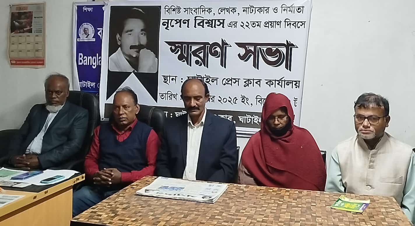 বিশিষ্ট সাংবাদিক লেখক নাট্যকার নির্মাতা নৃপেণ বিশ্বাসের ২২তম প্রয়াণ দিবসে ঘাটাইলে স্মরণসভা অনুষ্ঠিত হয়েছে।