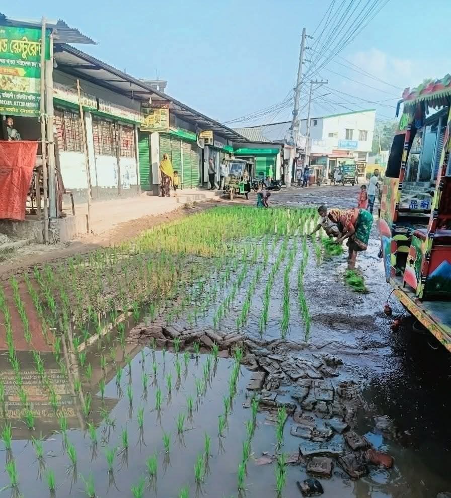 “এটা কোনো কৌতুক নয়, চরম হতাশা থেকেই আমরা এই প্রতিবাদ করেছি। রাস্তা যদি না থাকে, তাহলে ধানই লাগাতে হবে।”