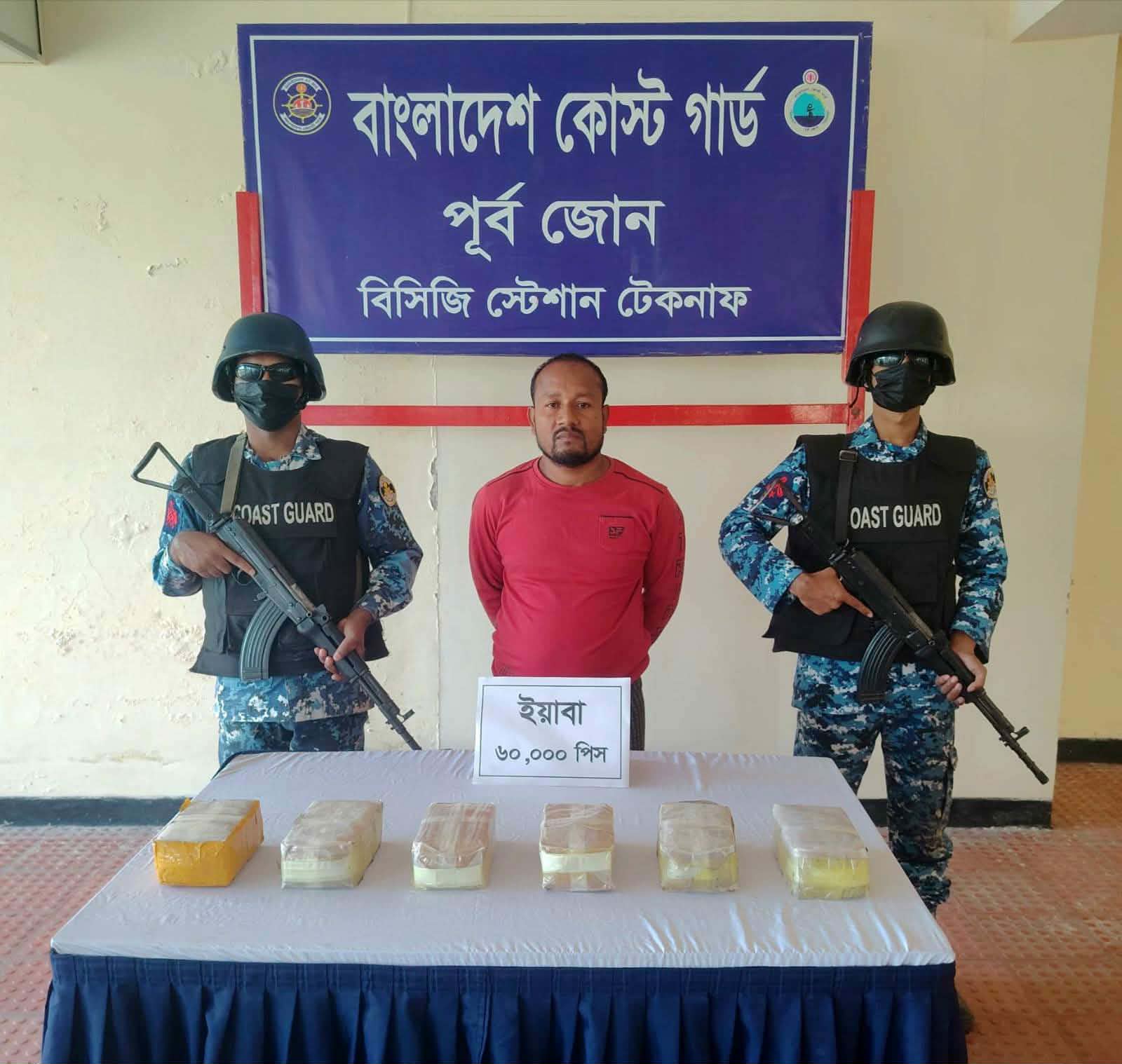 কক্সবাজারের টেকনাফে প্রায় ৩ কোটি টাকা মূল্যের ৬০ হাজার পিস ইয়াবাসহ ফারুক নামের ১ জন মাদক পাচারকারীকে আটক করেছে কোস্ট গার্ড।