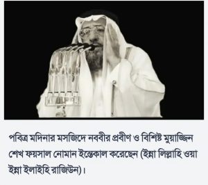 মসজিদে নববীর বর্ষীয়ান মুয়াজ্জিন শেখ ফয়সাল নোমানের মৃত্যু – dainikprothombarta
