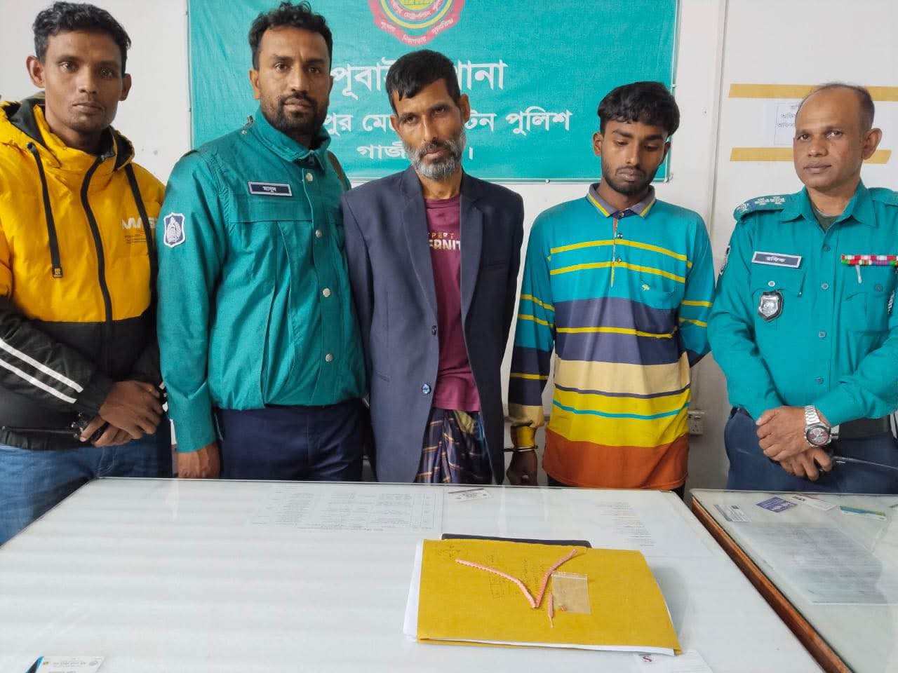 গাজীপুরের পূবাইল থানার হায়দরাবাদ এলাকা থেকে ৬৪ পিস ইয়াবাসহ দুই মাদক ব্যবসায়ীকে আটক করেছে পুলিশ। আটককৃতরা হলেন— মোঃ আনোয়ার (৫০) ও মোঃ সজল (২২)।
