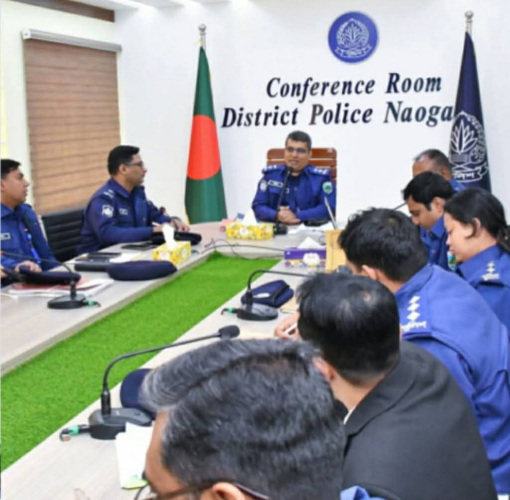 উক্ত সভায় সভাপতিত্ব করেন নওগাঁ জেলার সম্মানিত পুলিশ সুপার জনাব মোহাম্মদ তারিকুল ইসলাম মহোদয়। সভায় তিনি জেলার সার্বিক আইন-শৃঙ্খলা পরিস্থিতি পর্যালোচনা করেন এবং সকল অফিসারবৃন্দের সাথে মামলা তদন্তের অগ্রগতি, তদন্তের মানোন্নয়ন, সময়মতো ওয়ারেন্ট তামিল, অপরাধ নিয়ন্ত্রণ এবং থানাভিত্তিক শান্তি-শৃঙ্খলা বজায় রাখার বিষয়ে বিস্তারিত আলোচনা করেন।