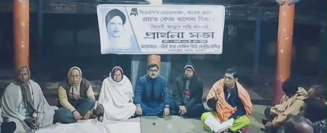 নওগাঁ জেলার মান্দা উপজেলার "শ্রী শ্রী রাধাগোবিন্দ জীউ কেন্দ্রীয় মন্দিরে " বিএনপির চেয়ারপার্সন ও সাবেক প্রধানমন্ত্রী প্রয়াত বেগম খালেদা জিয়ার বিদেহী আত্মার শান্তি কামনায় এক প্রার্থনা সভা অনুষ্ঠিত হয়। অনুষ্ঠানে জাতীয়তাবাদী বিএনপির চেয়ারপারসন প্রয়াত বেগম খালেদা জিয়ার বিদেহী আত্মার শান্তি কামনায় হিন্দু সম্প্রদায়ের নেতারা উপস্থিত হয়ে এক প্রার্থনা সভার আয়োজন করেন।