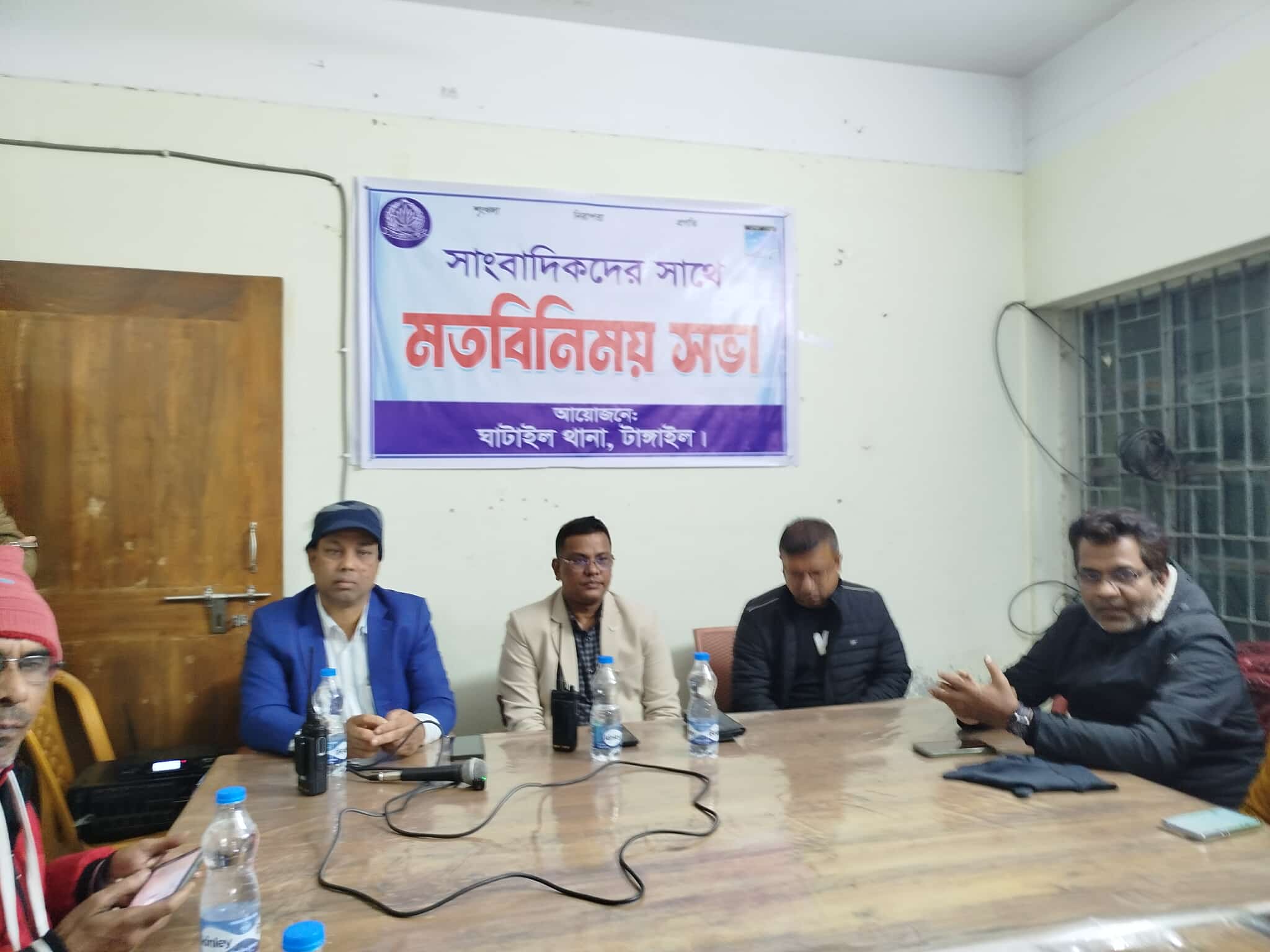 মঙ্গলবার (৬ জানুয়ারি) টাঙ্গাইলের ঘাটাইল থানার নবাগত অফিসার ইনচার্জ (ওসি)মোকছেদুর রহমান সাথে সন্ধ্যায় থানা হল রুমে ঘাটাইল প্রেসক্লাবের সাংবাদিকদের সাথে মতবিনিময় সভা অনুষ্ঠিত হয়েছে।