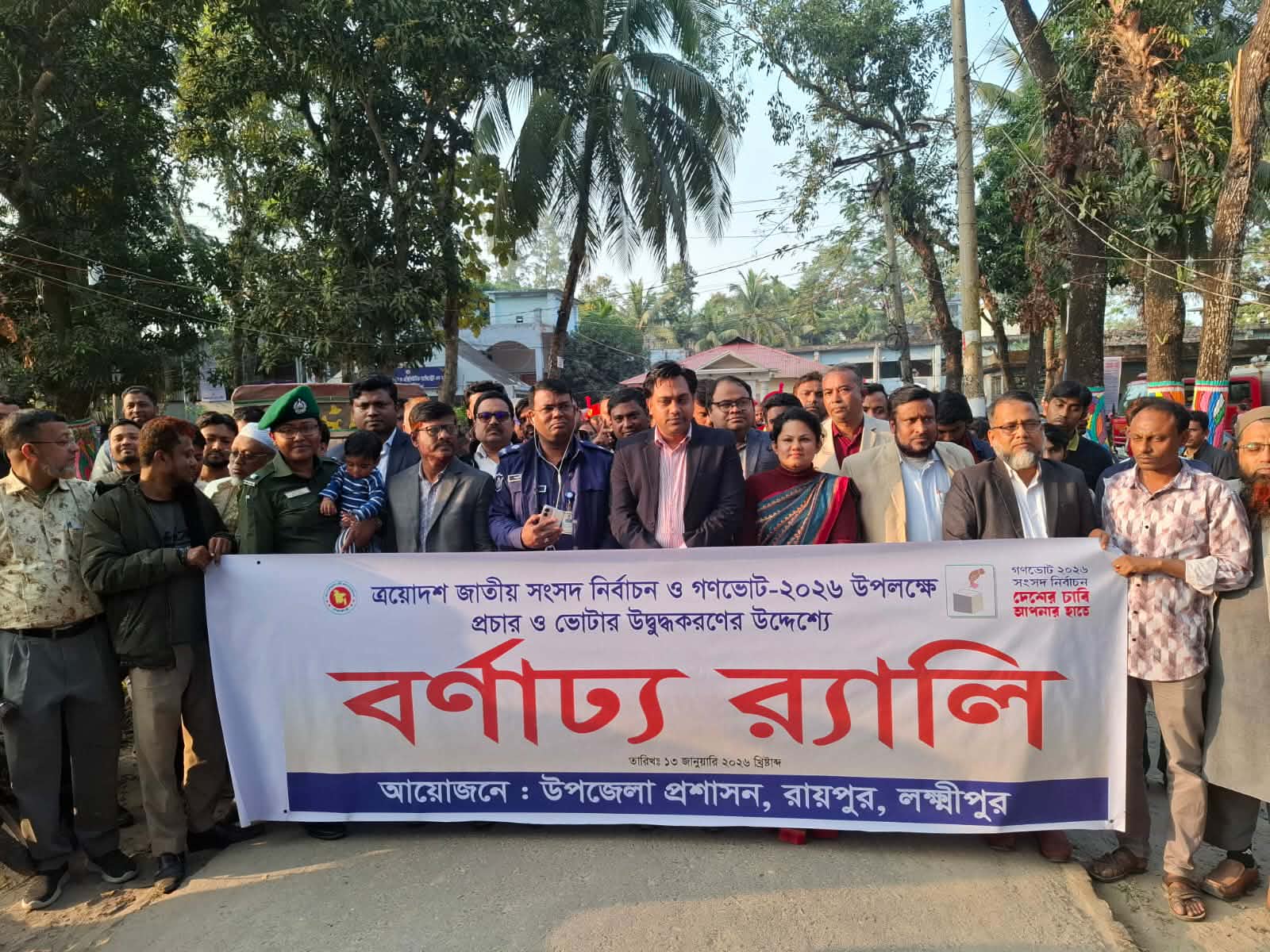 ত্রয়োদশ জাতীয় সংসদ নির্বাচন ও গণভোট–২০২৬ সামনে রেখে ভোটারদের অংশগ্রহণ ও জনসচেতনতা বৃদ্ধির লক্ষ্যে লক্ষ্মীপুরের রায়পুর উপজেলায় বর্ণাঢ্য প্রচারণামূলক র্যালি অনুষ্ঠিত হয়েছে।