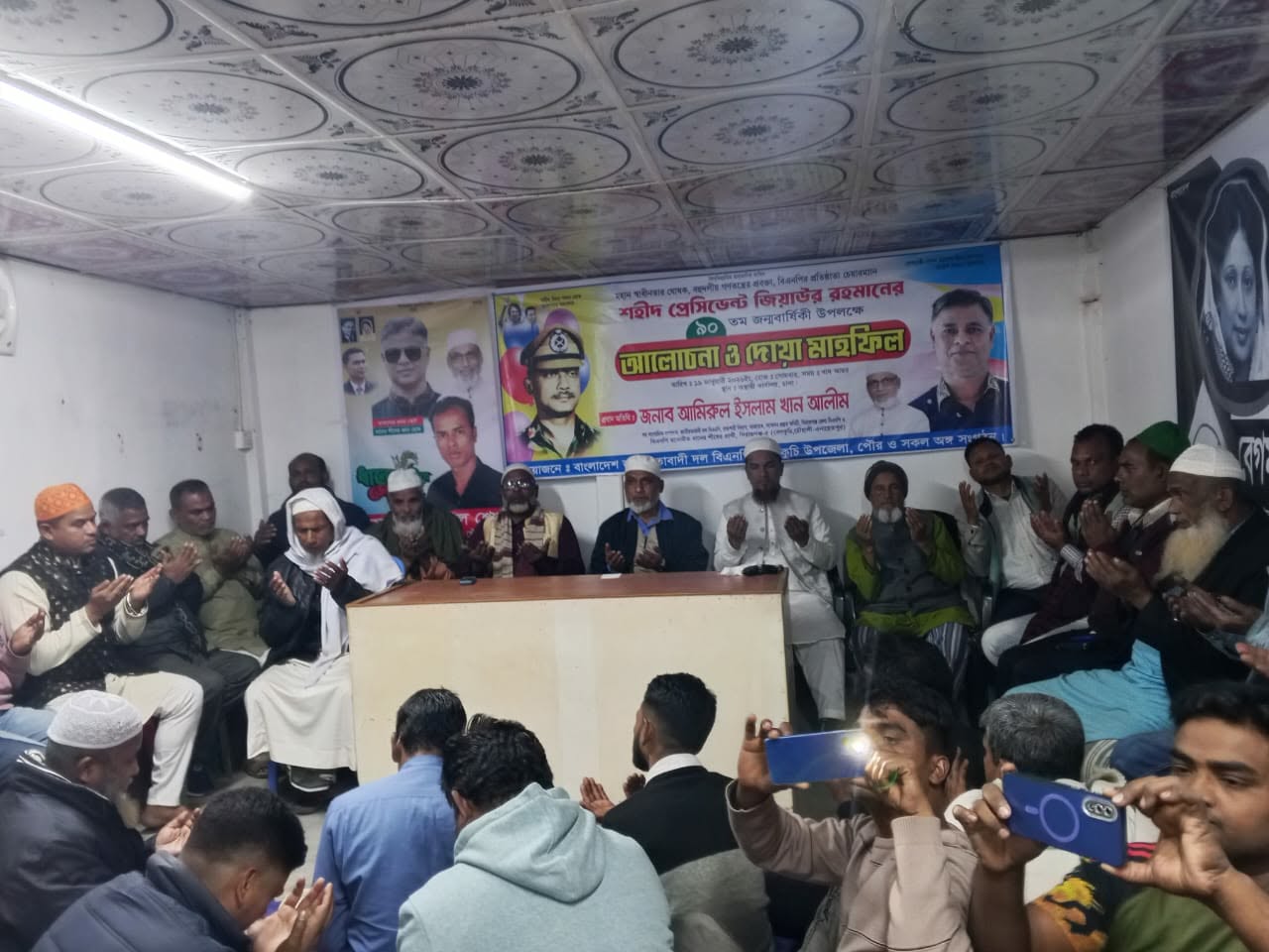 আলোচনা শেষে শহীদ রাষ্ট্রপতি জিয়াউর রহমান ও মরহুমা খালেদা জিয়ার রুহের মাগফেরাত কামনা করে বিশেষ দোয়া অনুষ্ঠিত হয়।