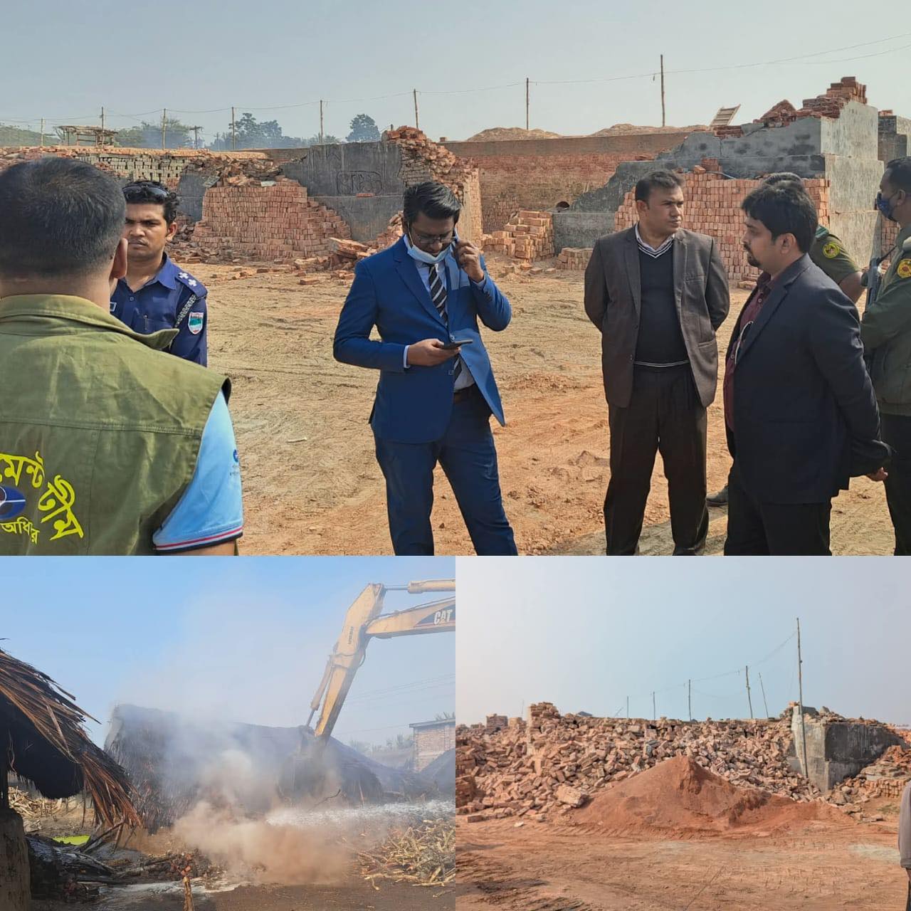 মোবাইল কোর্টের অভিযানে দুটি এক্সকাভেটরের সাহায্যে ৩টি অবৈধ ইটভাটার চিমনি, কিলন ও কাঁচা ইট সম্পূর্ণভাবে ধ্বংস করা হয়। পাশাপাশি পরিবেশ ও জনস্বাস্থ্যের জন্য মারাত্মক ক্ষতিকর ৫৩টি অবৈধ কয়লার চুল্লি সম্পূর্ণরূপে উচ্ছেদ করা হয়।