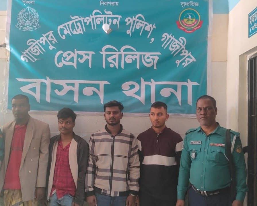 ২২ জানুয়ারি ২০২৬ ইং তারিখে গাজীপুর মহানগরের বাসন থানা পুলিশ বিশেষ অভিযান পরিচালনা করে বিভিন্ন মামলার ১১ জন আসামীকে গ্রেফতার করেছে। গ্রেফতারকৃতদের মধ্যে রাজনৈতিক মামলা, ধর্ষণ মামলা, ডাকাতির প্রস্তুতির মামলা, জিআর পরোয়ানা ও প্রসিকিউশনভুক্ত মামলার আসামীসহ রিমান্ডের আসামী রয়েছে। গ্রেফতারের পর সকল আসামীকে রিমান্ডের আবেদনসহ বিজ্ঞ আদালতে প্রেরণ করা হয়।