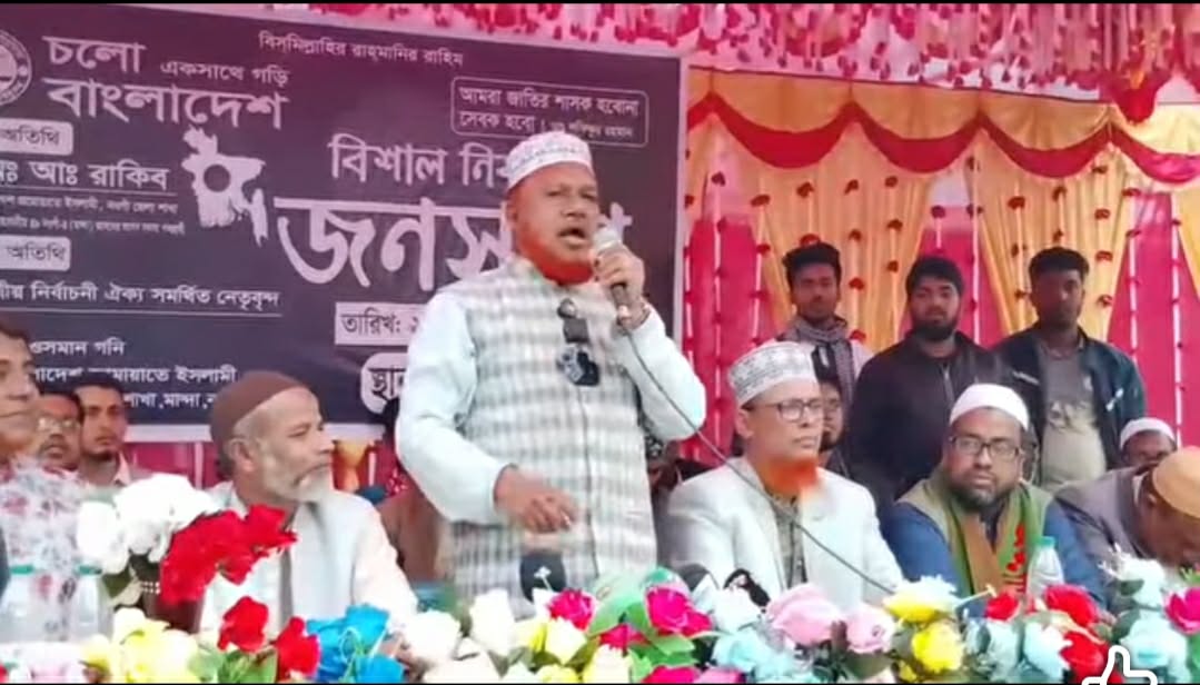 নওগাঁ জেলার মান্দা উপজেলায় বাংলাদেশ জামায়াতে ইসলামী ৯নং তেঁতুলিয়া ইউনিয়ন শাখার আয়োজনে দাঁড়িপাল্লা প্রতীকের নির্বাচনী জনসভা অনুষ্ঠিত হয়েছে।আজ রোববার (২৫ জানুয়ারি) বিকেলে তেঁতুলিয়া ইউনিয়নের সাবাইহাট পিঁয়াজ পট্টিতে এ নির্বাচনী জনসভায় প্রধান অতিথি হিসেবে উপস্থিত থেকে বক্তব্য দেন বাংলাদেশ জামায়াতে ইসলামী মনোনীত এমপি পদ প্রার্থী খন্দকার আব্দুর রাকিব। অনুষ্ঠানে সভাপতিত্ব করেন তেঁতুলিয়া ইউনিয়ন জামায়াতের আমীর ওসমান গনি। বিশেষ অতিথি হিসেবে উপস্থিত থেকে বক্তব্য দেন জেলা কর্মপরিষদের সদস্য মাওলানা মোস্তফা আল আমিন, অন্যান্য বক্তাদের মধ্যে বক্তব্য রাখেন, উপজেলা আমির ডা. আমিনুল হক, উপজেলা সেক্রেটারি মাস্টার মোয়াজ্জেম হোসেন, সহকারী সেক্রেটারি ইলিয়াস খান, যুব বিভাগ মান্দা উপজেলা শাখা, সভাপতি মোঃ আব্দুল মালেক, শিবির নেতা আমানুল্লাহ, রায়হান এবং ৯নং তেঁতুলিয়া ইউনিয়ন পরিষদ চেয়ারম্যান মোখলেসুর রহমান কামরুল।