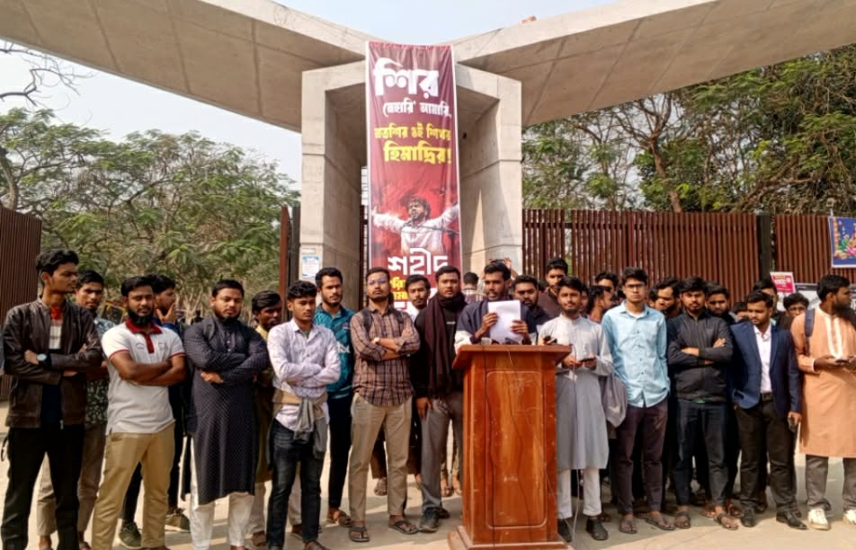 রবিবার ( ২৫ জানুয়ারি ২০২৬) সকাল ১০:৩০ টায় বিশ্ববিদ্যালয়ের প্রধান ফটকের সামনে সংবাদ সম্মেলন শুরু করেছেন শিক্ষার্থীরা।