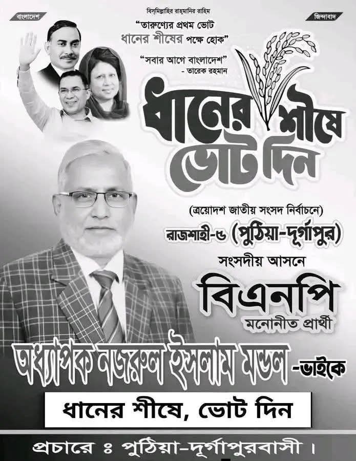 আসন্ন ত্রয়োদশ জাতীয় সংসদ নির্বাচনকে সামনে রেখে রাজশাহীর দুর্গাপুর উপজেলায় বিএনপি মনোনীত ধানের শীষ প্রতীকের প্রার্থী অধ্যাপক নজরুল ইসলাম মন্ডল ব্যাপক নির্বাচনী প্রচারণা ও গণসংযোগ চালিয়ে যাচ্ছেন।