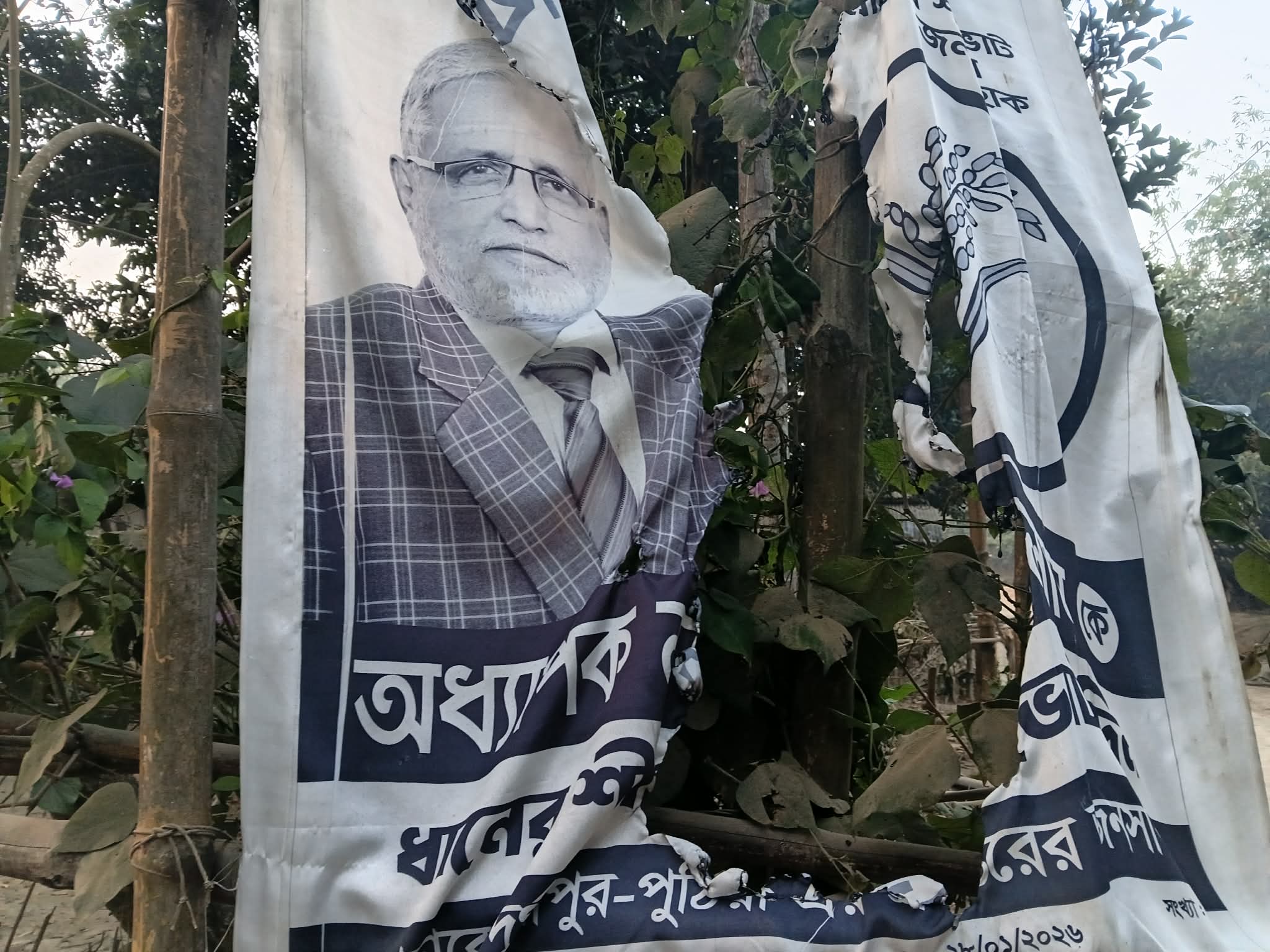 রাজশাহী ৫পুঠিয়া দুর্গাপুরের বিএনপি'র প্রার্থীর ব্যানার পুনানোর অভিযোগ