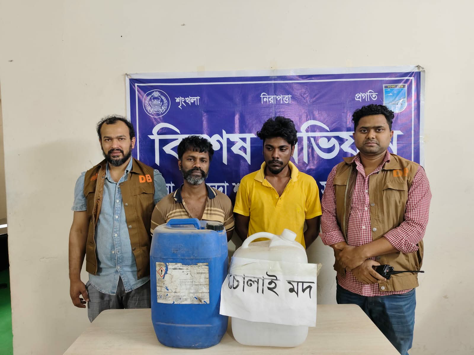 আশুলিয়া থানাধীন কাঠগড়া এলাকা হইতে পেশাদার মাদক ব্যবসায়ী ১। মোঃ সোহেল মোল্লা (৩৯), পিতা-আইয়ুব আলী মোল্লা, মাতা-আম্বিয়া, সাং-কাঠগড়া পশ্চিমপাড়া, থানা-আশুলিয়া, জেলা-ঢাকা, ২। জাহিদ হাসান (২৭), পিতা-জুবায়দুল, মাতা-ফাতেমা, সাং-মাঝিপাড়া, থানা-জয়পুরহাট সদর, জেলা-জয়পুরহাট, এ/পি সাং-কাঠগড়া (সোহেল মোল্লার বাড়ির ভাড়াটিয়া), থানা-আশুলিয়া, জেলা-ঢাকাদ্বয়কে ৪০ (চল্লিশ) লিটার চোলাইমদ, যাহার মূল্য অনুমান ৪০,০০০/-(চল্লিশ হাজার) টাকাসহ গ্রেফতার করেন ।