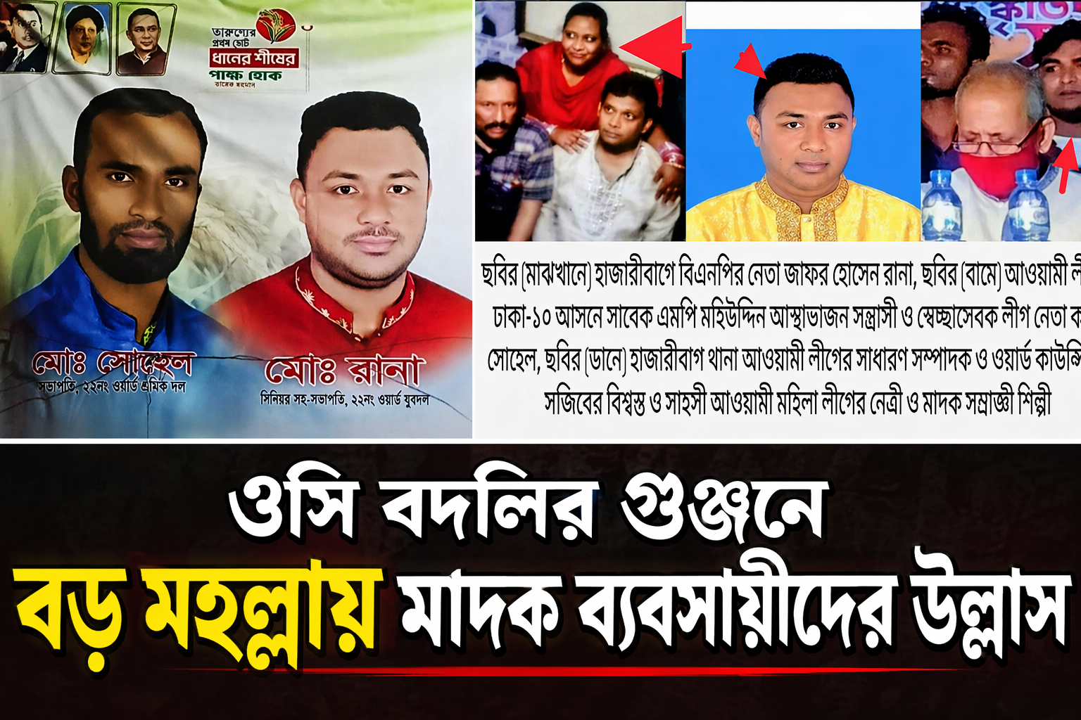 রাজধানীর হাজারীবাগ এলাকার গনকটুলি বড় মহল্লায় মাদকের গডফাদার ইয়াবা সুন্দরী শিল্পী বেগম, শেলি, জাফর কালন, কইরা কালন, সাঈদ, খোকন, সিমা সহ আরো কয়েকজন মাদক ব্যবসায়ীরা খবর পায় হাজারীবাগ থানার ভারপ্রাপ্ত কর্মকর্তা ওসি হাফিজুর রহমান অন্যত্র বদলি হতে যাচ্ছেন, আর সেই তথ্যের উল্লাসে মেতে উঠেন সকল মাদক ব্যবসায়ীরা, যাদের ইন্দন দিচ্ছেন শিল্পী বেগমের ছেলে কানা সোহেল ও ২২ নং ওয়ার্ড হাজারীবাগ থানার সিনিয়র যুগ্ম আহ্বায়ক ও মাদক ব্যবসায়ী জাফর আহমেদ রানা সহ সোহেল ওরফে ক্যাপ সোহেল , আর সেই উল্লাসে থেমে নেই বইলখানার শাবানা বেগম ও গাজা ব্যবসায়ী টিটু, বিশেষ সূত্রে জানা যায় হাজারীবাগ থানা আওয়ামী লীগের সাধারণ সম্পাদক ও ওয়ার্ড কাউন্সিলর সজীবের বিশ্বস্ত ও সাহসী সাবেক মহিলা লীগের নেত্রী যিনি এ সময়ে মাদক সম্রাজ্ঞী শিল্পী বেগম বর্তমানে গনকটুলির বড় মহল্লায় মরণ নাশক নেশা ইয়াবার ডিলার হিসেবে পরিচিত,