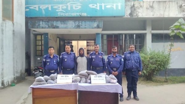 সিরাজগঞ্জ প্রতিনিধি : সিরাজগঞ্জের বেলকুচিতে ক্ষিদ্রমাটিয়া বেরীবাধ সংলগ্ন এলাকায় পাকা রাস্তার উপর থেকে ২০ কেজি মাদকদ্রব্য গাঁজাসহ শাহ আলম (২৩) নামে এক যুবককে গ্রেফতার করেছে বেলকুচি থানা পুলিশ।