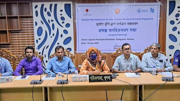 নুরুল আমিন পলাশ,পাইকগাছা(খুলনা): পাইকগাছায় দুর্যোগ ঝুঁকি হ্রাস কার্যক্রম প্রকল্প অহিতকরণ সভা অনুষ্ঠিত হয়েছে। বৃহস্পতিবার সকাল ১১টায় উপজেলা পরিষদ মিলনায়তনে এ সভা অনুষ্ঠিত হয়। জাতিসংঘ বিশ্বখাদ্য কর্মসূচি (WFP) এর সার্বিক সহায়তায়