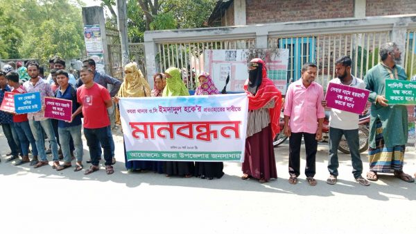 কয়রা(খুলনা)প্রতিনিধি : খুলনার কয়রা থানার ভারপ্রাপ্ত কর্মকর্তা (ওসি) জি এম ইমদাদুল হকের প্রত্যাহারের দাবীতে মানববন্ধন করেছে স্হানীয় বাসিন্দরা। আজ সোমবার (১০ মার্চ) সকাল ১১ টায় কয়রা প্রেসক্লাবের সামনে এ মানববন্ধন