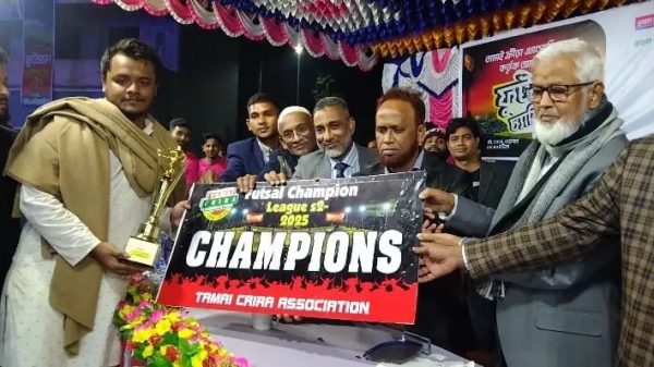 সিরাজগঞ্জ প্রতিনিধি: সিরাজগঞ্জের বেলকুচিতে তামাই বহুমুখী উচ্চ বিদ্যালয় মাঠে তামাই ক্রীড়া এসোসিয়েশন কর্তৃক আয়োজিত নাইট ফুটসাল চ্যাম্পিয়নলীগ ফাইনাল খেলা অনুষ্ঠিত হয়েছে। ১৯ ডিসেম্বর শুক্রবার সন্ধায় নাইট ফুটসাল চ্যাম্পিয়নলীগ খেলার অনুষ্ঠানে